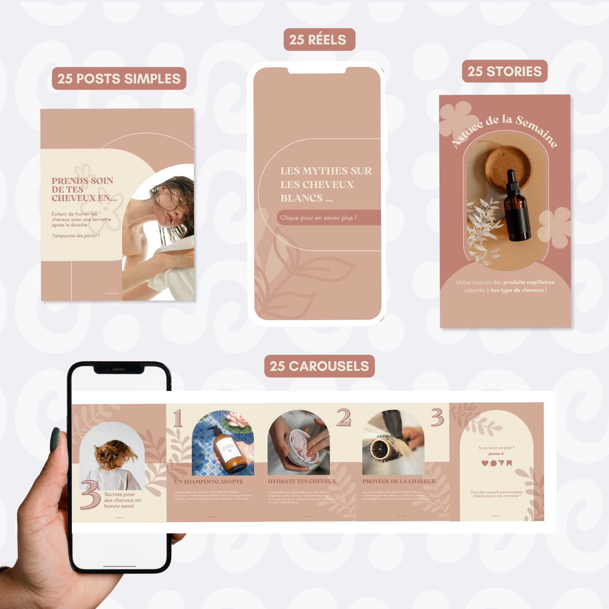 Je viens de découvrir tout le pack et... wahou ! Un énorme merci ! C’est exactement ce que je cherchais, aussi bien dans le contenu que dans le visuel. Tout est tellement bien pensé, je suis vraiment ravie ! Après avoir fait plusieurs formations pour apprendre à gérer mon Insagram, là je n’ai plus rien à faire... tout est prêt, je n’ai qu’à planifier mes posts sans me prendre la tête. Ça me fait un bien fou et ça allège vraiment mon travail au quotidien. Merci pour votre bienveillance, votre réactivité et votre soutien constant