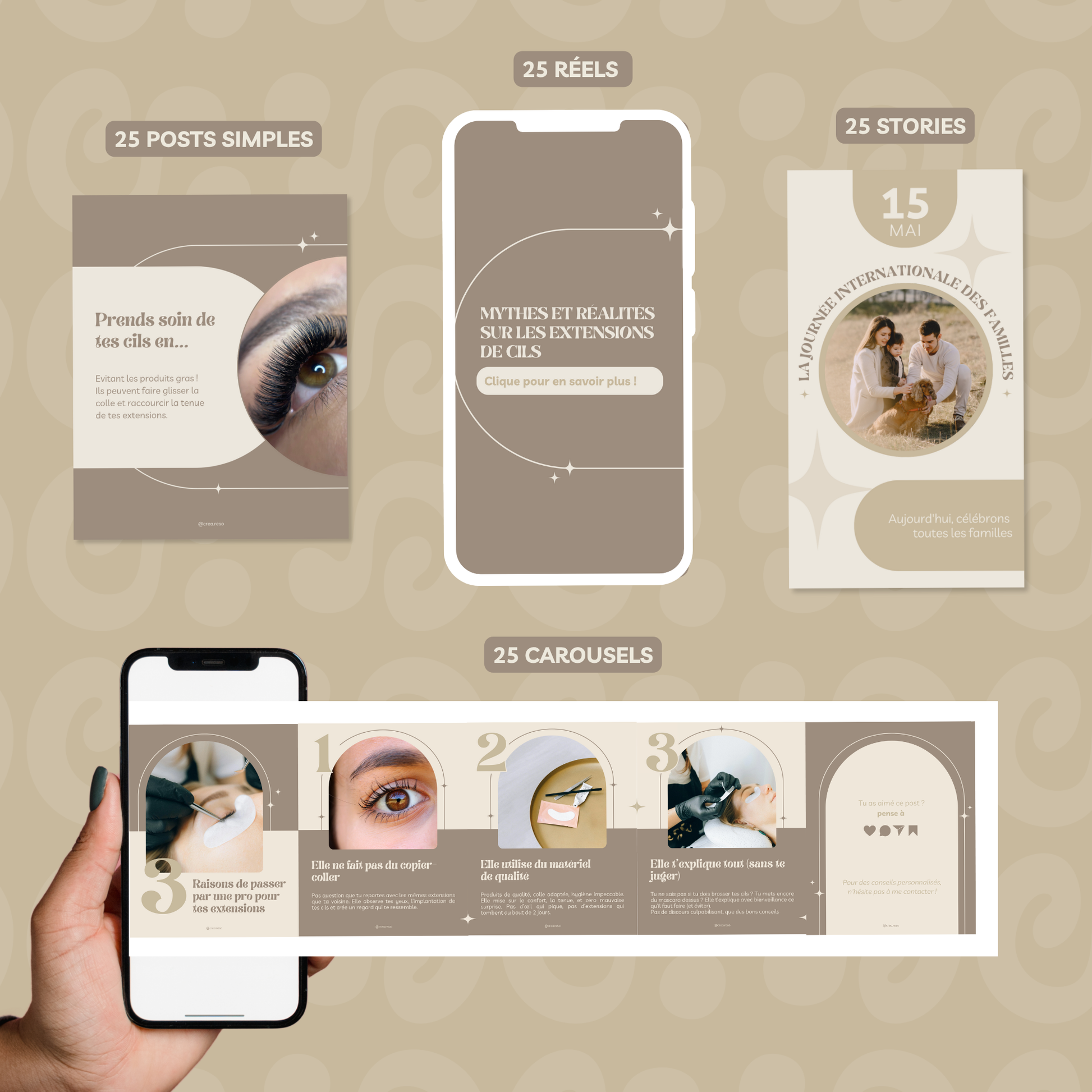 Je viens de découvrir tout le pack et... wahou ! Un énorme merci ! C’est exactement ce que je cherchais, aussi bien dans le contenu que dans le visuel. Tout est tellement bien pensé, je suis vraiment ravie ! Après avoir fait plusieurs formations pour apprendre à gérer mon Insagram, là je n’ai plus rien à faire... tout est prêt, je n’ai qu’à planifier mes posts sans me prendre la tête. Ça me fait un bien fou et ça allège vraiment mon travail au quotidien. Merci pour votre bienveillance, votre réactivité et votre soutien constant
