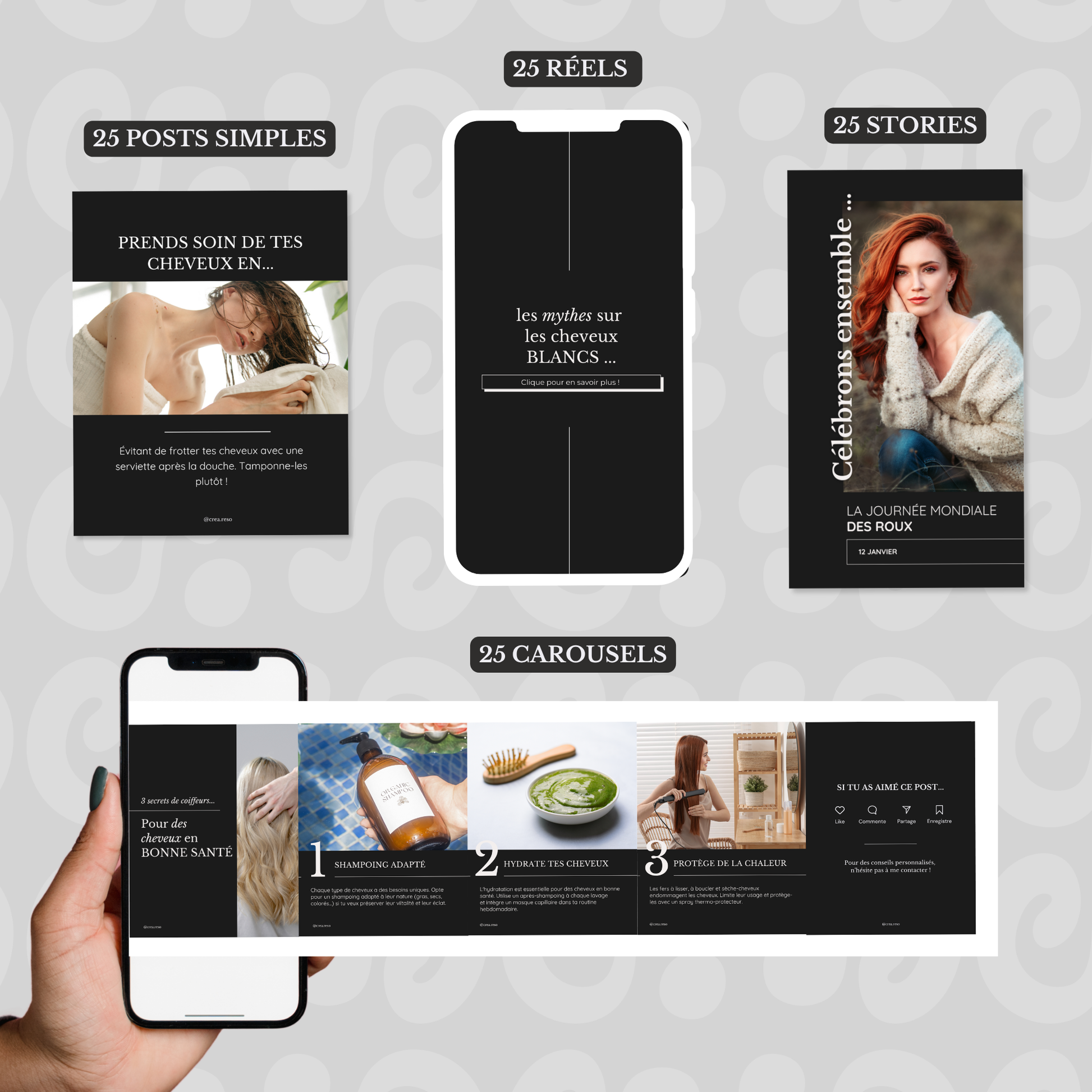 Je viens de découvrir tout le pack et... wahou ! Un énorme merci ! C’est exactement ce que je cherchais, aussi bien dans le contenu que dans le visuel. Tout est tellement bien pensé, je suis vraiment ravie ! Après avoir fait plusieurs formations pour apprendre à gérer mon Insagram, là je n’ai plus rien à faire... tout est prêt, je n’ai qu’à planifier mes posts sans me prendre la tête. Ça me fait un bien fou et ça allège vraiment mon travail au quotidien. Merci pour votre bienveillance, votre réactivité et votre soutien constant