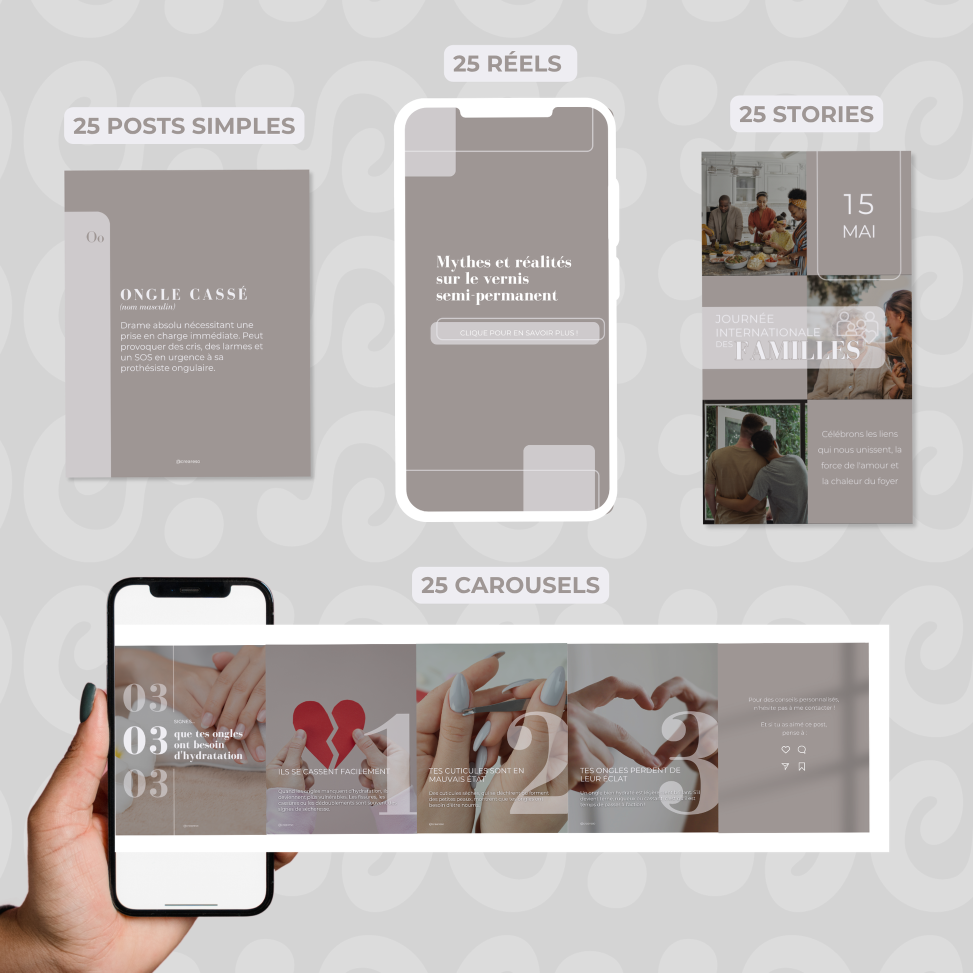 Je viens de découvrir tout le pack et... wahou ! Un énorme merci ! C’est exactement ce que je cherchais, aussi bien dans le contenu que dans le visuel. Tout est tellement bien pensé, je suis vraiment ravie ! Après avoir fait plusieurs formations pour apprendre à gérer mon Insagram, là je n’ai plus rien à faire... tout est prêt, je n’ai qu’à planifier mes posts sans me prendre la tête. Ça me fait un bien fou et ça allège vraiment mon travail au quotidien. Merci pour votre bienveillance, votre réactivité et votre soutien constant